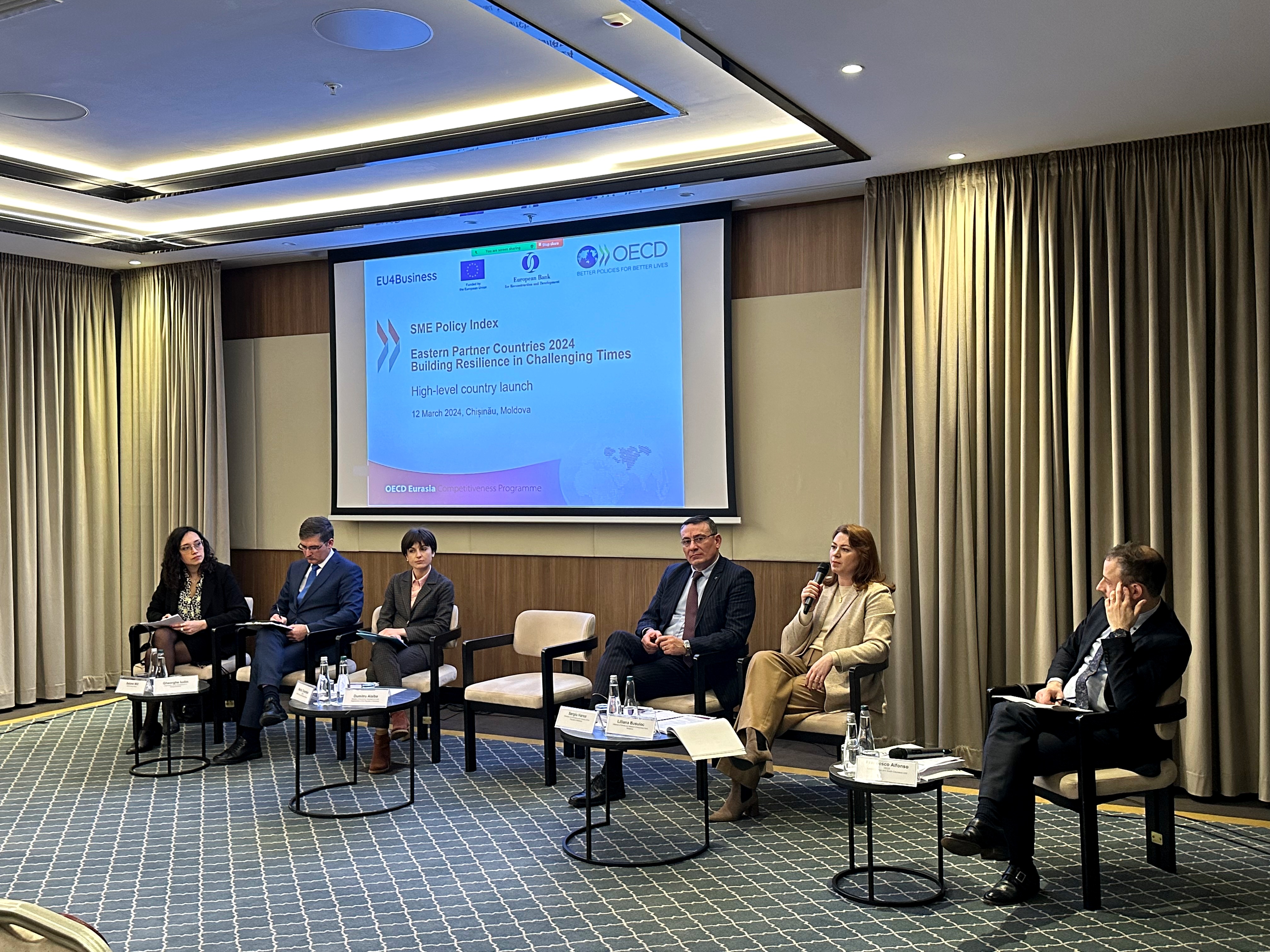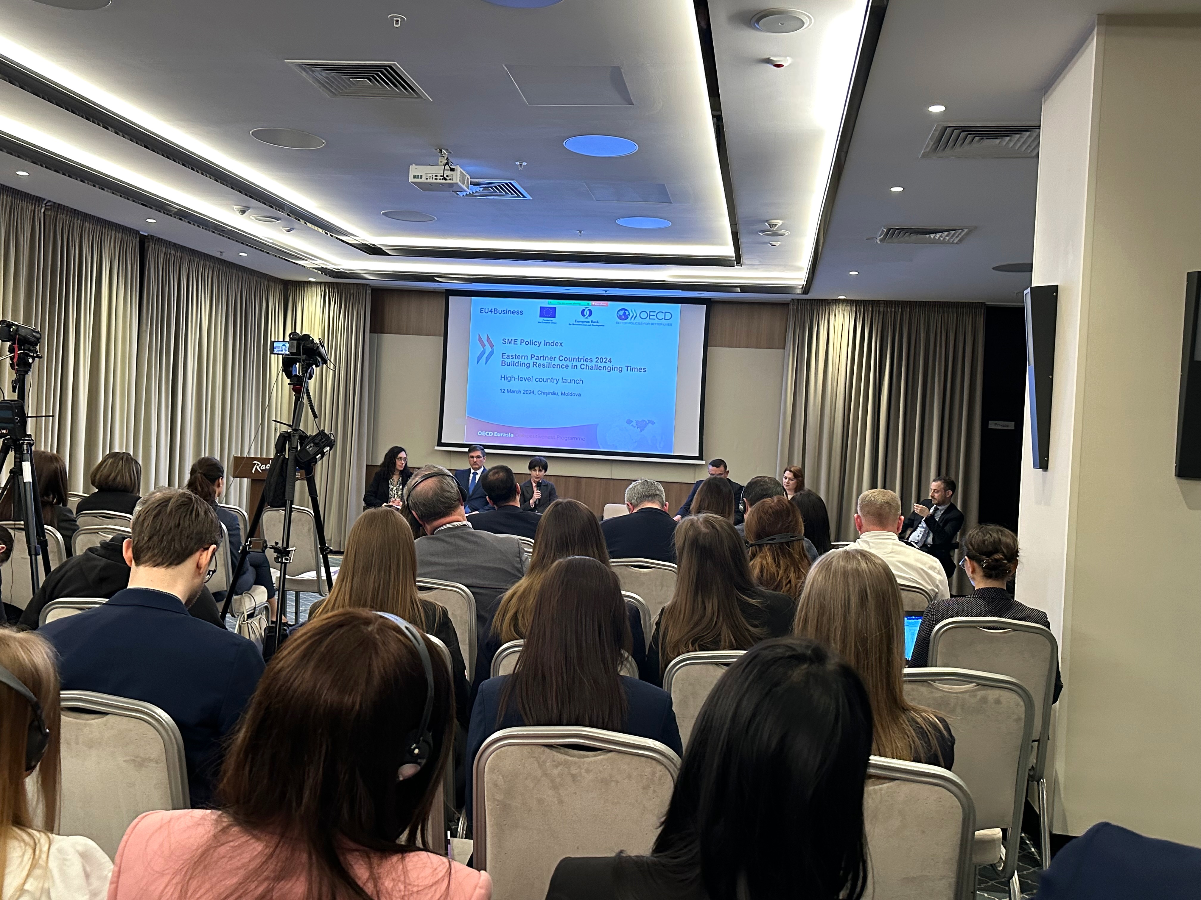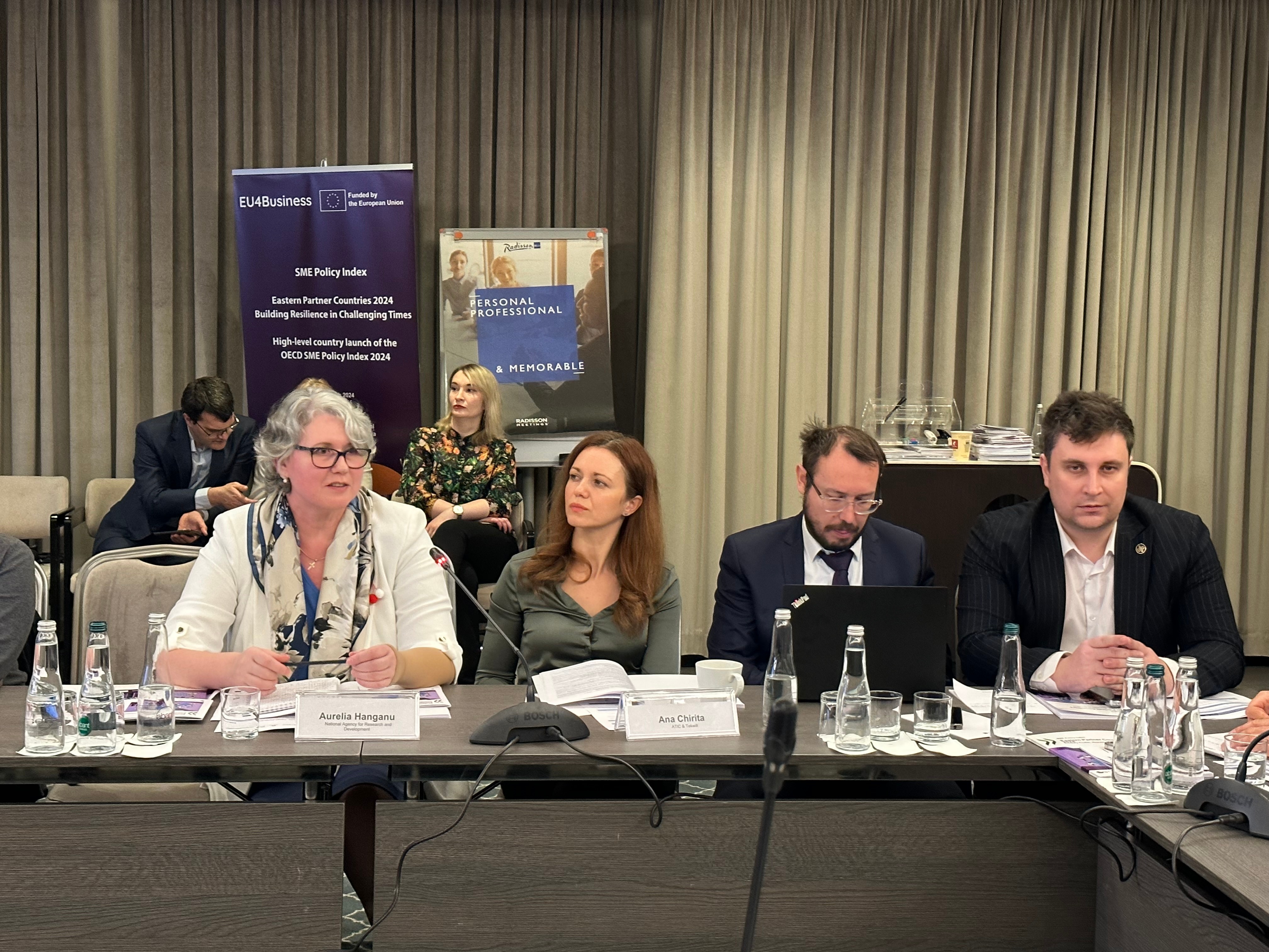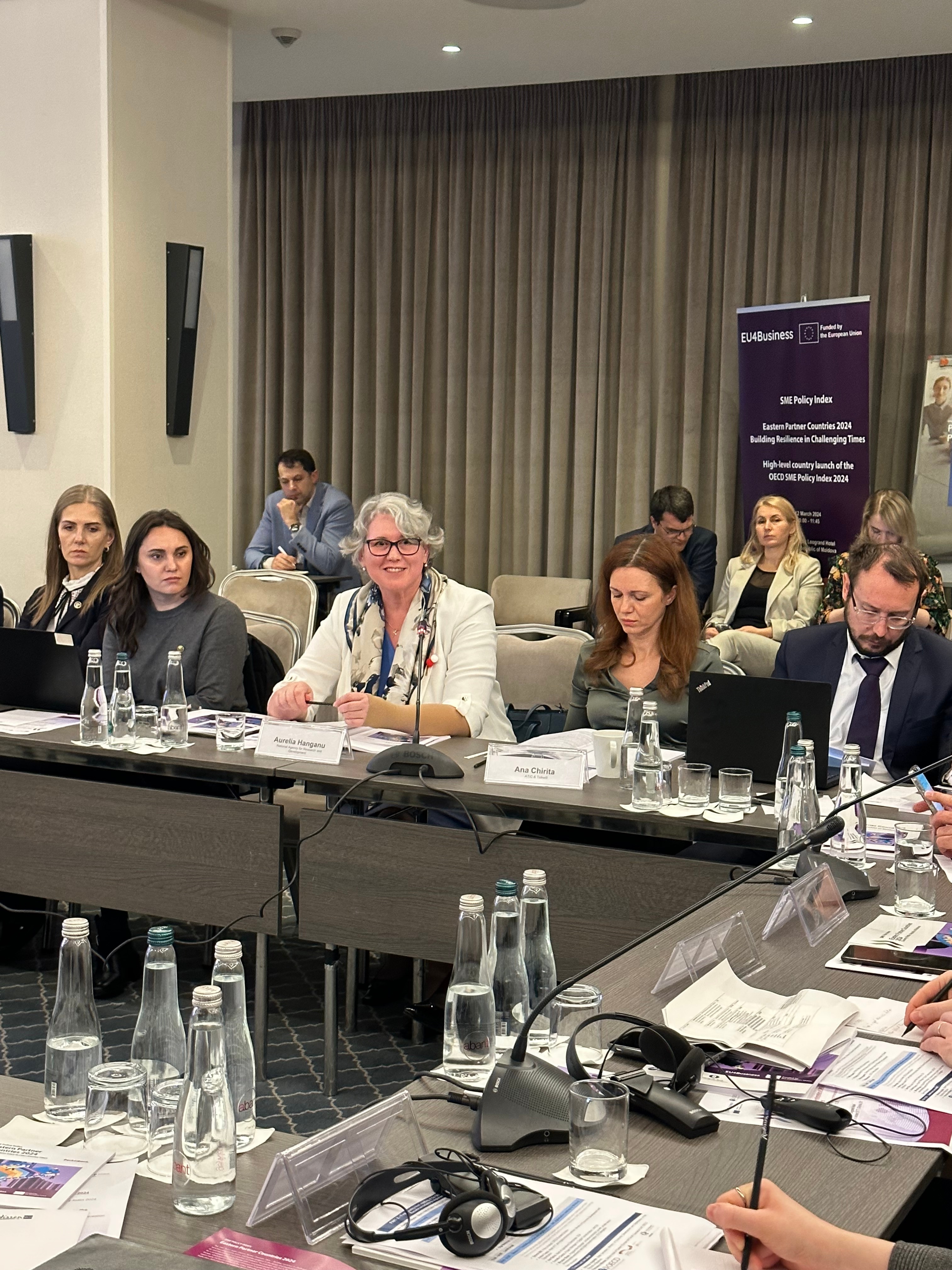 Directorul General al Agenției Naționale pentru Cercetare și Dezvoltare (ANCD), dr.hab. Aurelia Hanganu, a participat, la 12 martie 2024, la evenimentul de prezentare a Indexului OCDE privind politicile pentru IMM-uri: Țările Parteneriatului Estic 2024. La eveniment au participat reprezentanți ai instituțiilor de stat și asociațiilor de întreprinderi mici și mijlocii (IMM) din Republica Moldova, reprezentanți ai UE, Directoratul General pentru vecinătate: Dumitru Alaiba, vicepremier, ministrul Dezvoltării Economice și Digitalizării, Gheorghe Iudin, director interimar pentru Dezvoltarea Antreprenoriatului, Liliana Busuioc, director executiv al Alianţei IMM-urilor din RM Moldova, Maria Terentiev, manager principal, consilier pentru IMM-uri Grupul de Finanțe și Dezvoltare la BERD și alții. La eveniment a fost prezent și Vitalie Moraru, președinte al Rețelei moldovenești de transfer tehnologic.